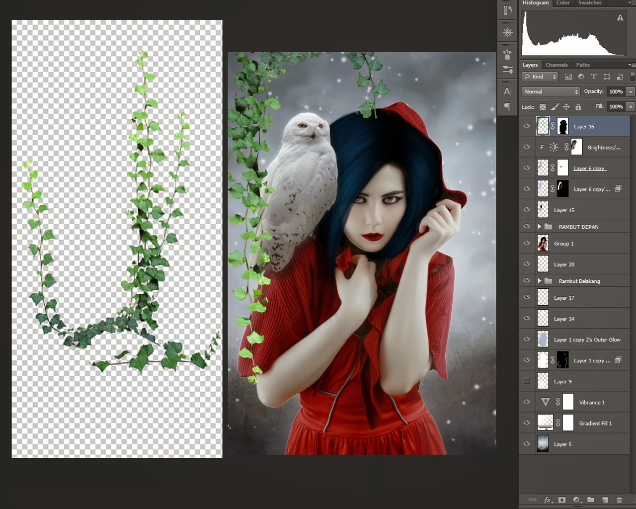 keyword : ivy PNG 37. Klik 2x pada layer daun ubah blending seperti
